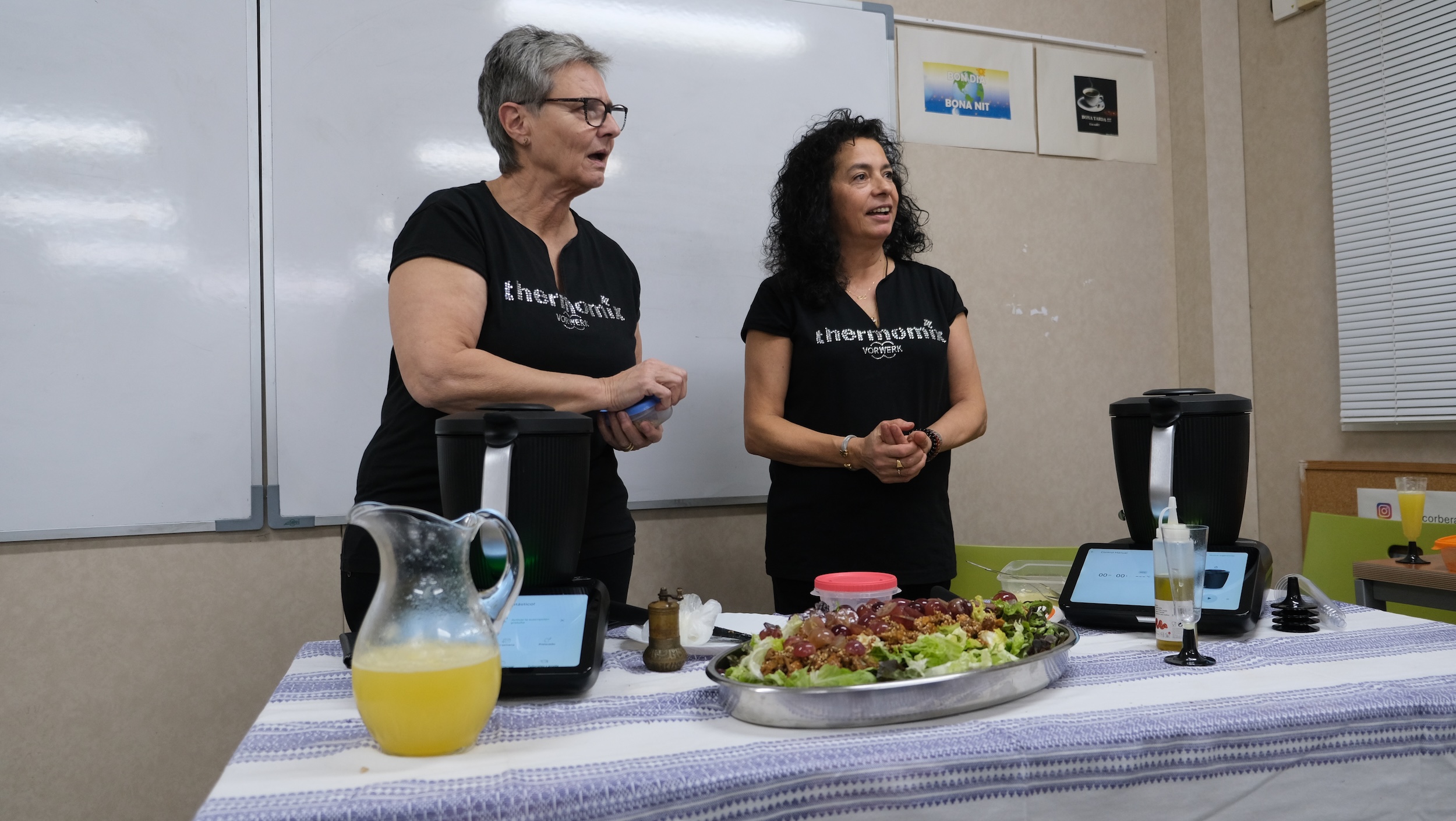 La companya Beni Gómez ens ensenyarà a preparar plats suculents amb Thermomix, ajudada per la Cristina Roig. Després soparem les coses preparades i algun requisit més que afegirem al menú.